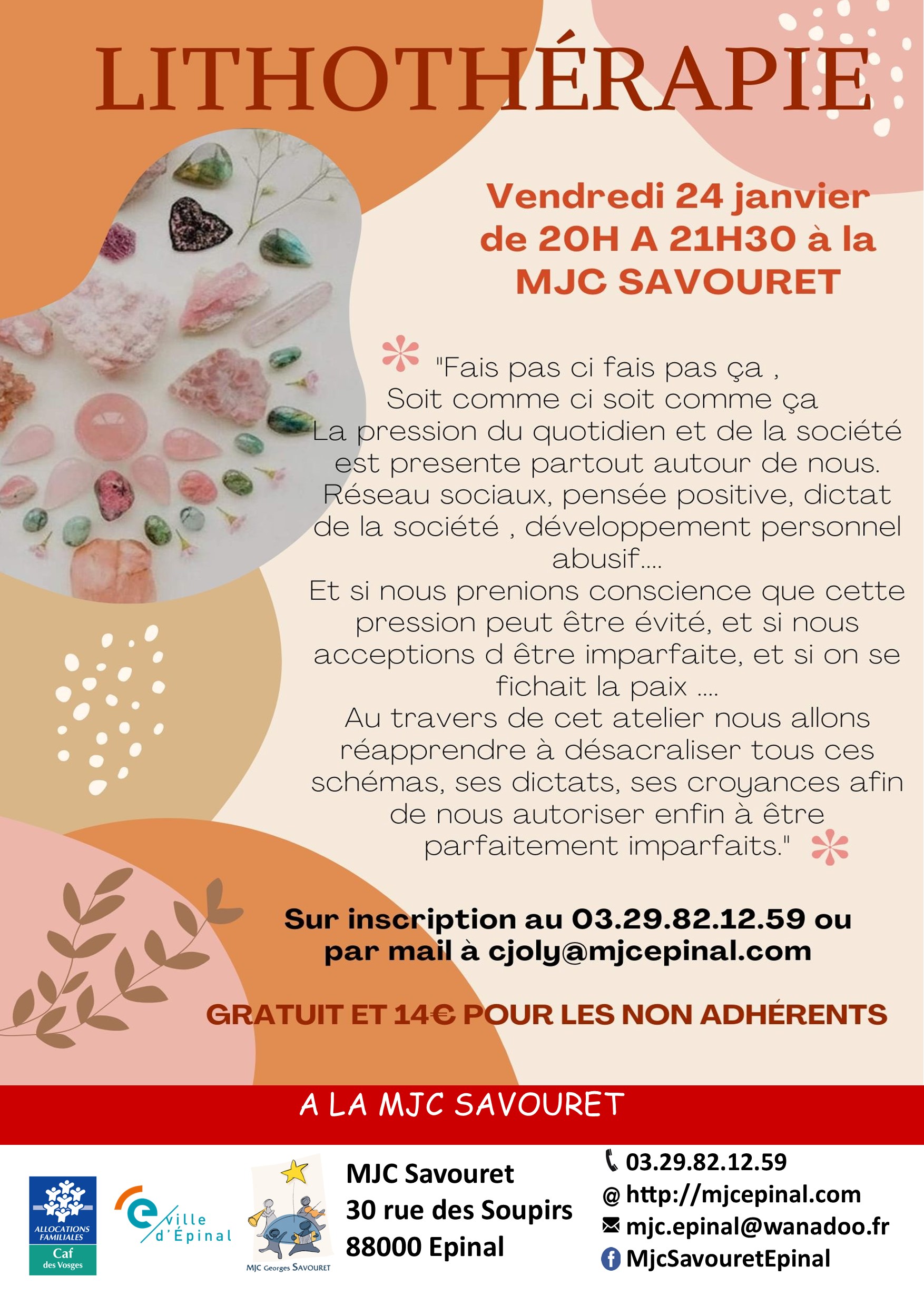 Sur inscription au 03.29.82.12.59 ou par mail à cjoly@mjcepinal.fr