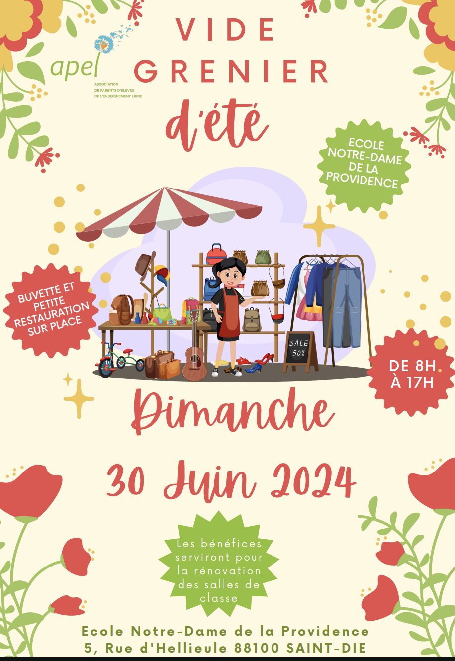 Brocante familiale organisée par l’association des parents d’élèves de l’école Notre Dame de la Providence.