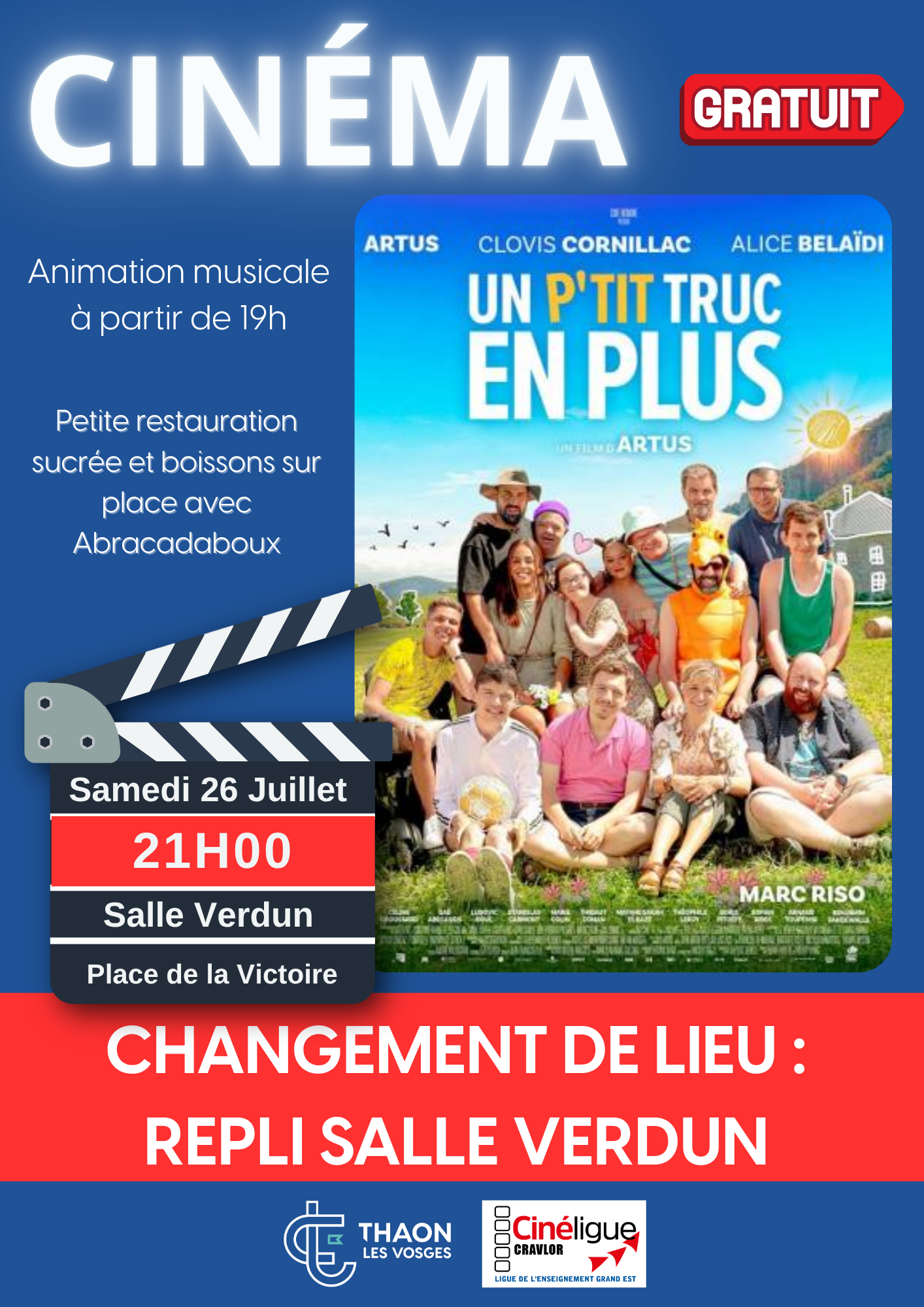 📽 𝐀̀ 𝟐𝟏𝐡, projection de la comédie émouvante et pleine d’humour “𝐔𝐧 𝐩’𝐭𝐢𝐭 𝐭𝐫𝐮𝐜 𝐞𝐧 𝐩𝐥𝐮𝐬”, avec Artus, Clovis Cornillac et Alice Belaïdi 💛