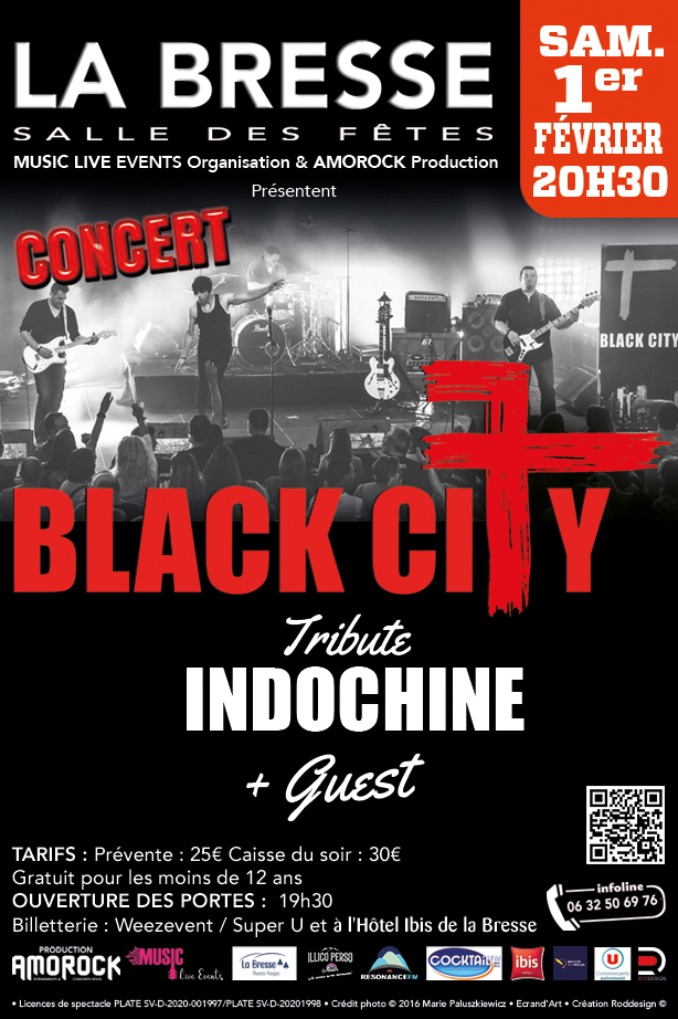 Après 10 ans d’existence et plus de 250 concerts, Black City – tribute Indochine a eut le privilège de pouvoir jouer sur des scènes mythiques Belges comme les Gens d’Ere, SPA tribute festival, Obigies festival, Yes2Day, Rienne tribute, Ittre tribute, le Festhuyval, Le Cover Seneffe, Les Dolympiades, Festival de Mondorf (Luxembourg), La Fiesta City, Made in Hautrage, Le Goose fest, l’ Acte 3 ou encore, et non des moindres, le Spirit of 66 à Verviers à sept reprises