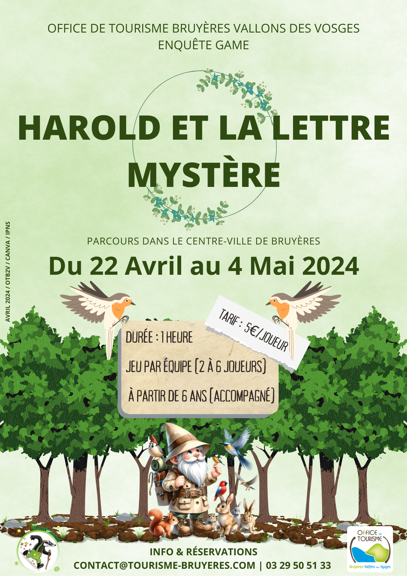Synopsis : Moi, c’est Harold, un passionné de la nature ! Au cours d’une exploration, j’ai mis la main sur une mystérieuse lettre. Après avoir effectué quelques recherches, je suis désormais persuadé qu’un être ou quelque chose essaie de communiquer une information cruciale. Avec ma bande d’amis, nous avons accumulé quelques indices, nous avons besoin d’aide pour élucider cette énigme. Etes-vous prêt à vous joindre à nous dans cette aventure nature ?