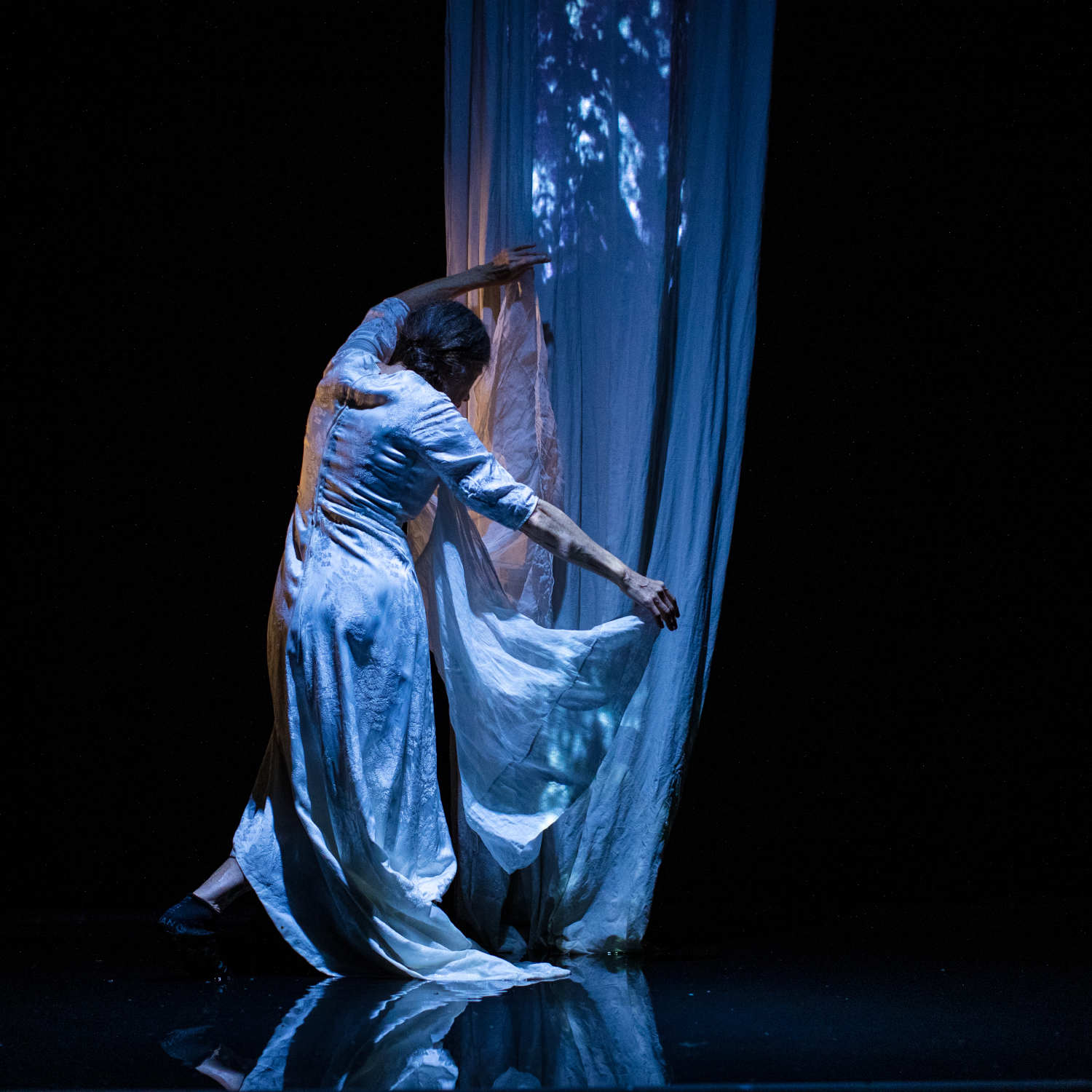 Théâtre optique dans lequel immersion et théâtralité se confondent, le spectacle met en valeur la dimension poétique de l’élément. Rêverie aquatique et sensorielle sur le reflet, la scénographie superpose l’illusion numérique et la matière eau dans le prisme d’une réalité augmentée. Entre brume, pluie ou vague la scène prend des airs de miroir éphémère ou d’océan impétueux dans cette traversée merveilleuse des états de l’eau.