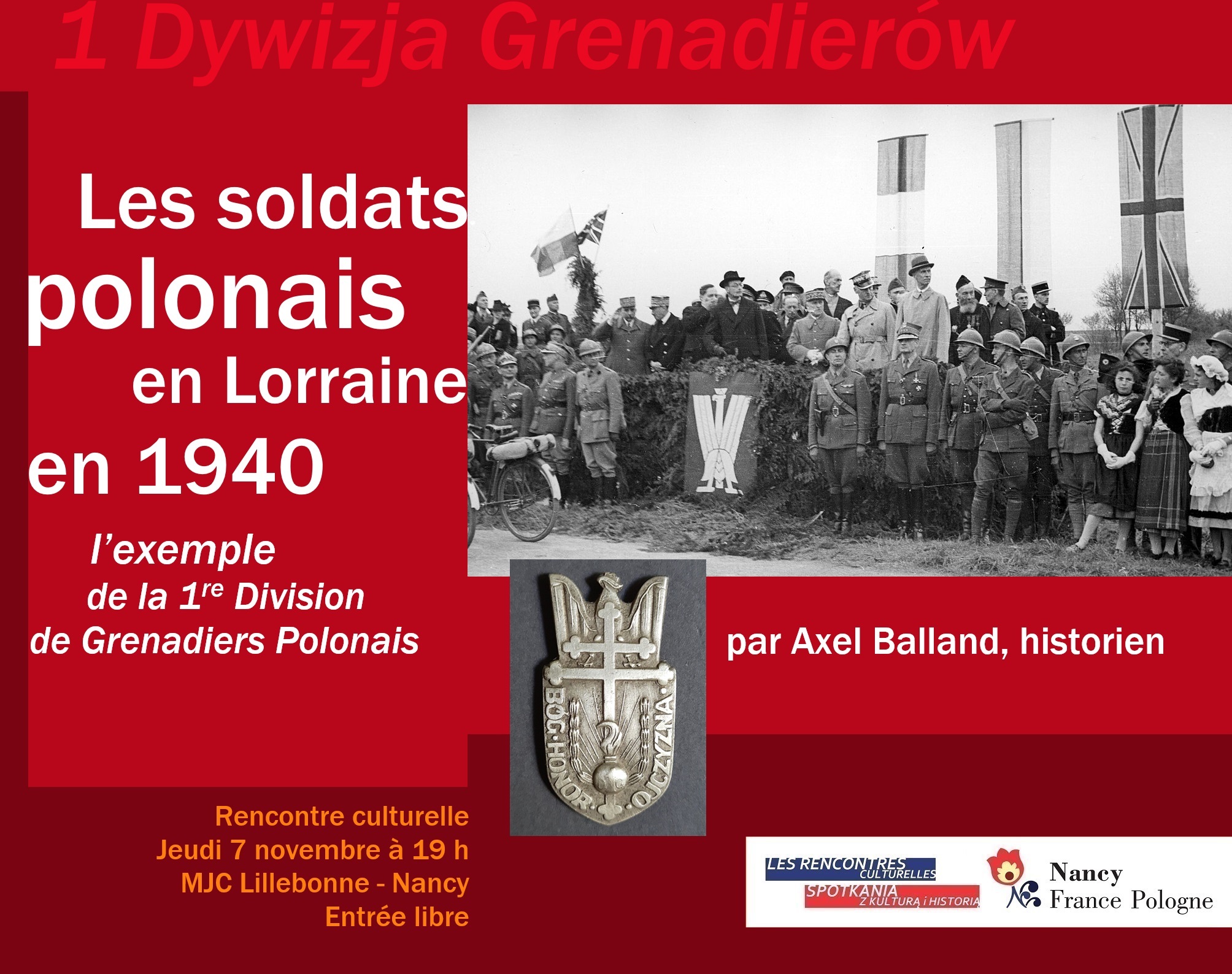 En 1939, une armée polonaise fut reconstituée en France suite à l’invasion de la Pologne. Deux divisions d’infanterie complète seront reconstituées et deux autres, dont la formation n’était pas achevée en juin 1940. La 1re Division de Grenadiers Polonais combattit à Dieuze, elle se replia depuis la Moselle et livra de violents combats dans la région de Blâmont et Baccarat, puis elle vint dans les Vosges, notamment dans le secteur de Raon-l’Etape et de Saint-Dié, entre le 18 et 21 juin 1940. La 2e Division a été de passage dans la Plaine du département des Vosges lors de son mouvement vers la Suisse. Axel Balland, historien et animateur de la commission « Temps de Guerre » de la Société Philomatique Vosgienne, présentera la reformation de cette armée, sa composition, les opérations militaires menées dans les Vosges durant la période et ce qu’ils sont devenus après l’armistice du 22 juin 1940. Il reviendra également sur des histoires individuelles liées à ces combattants.