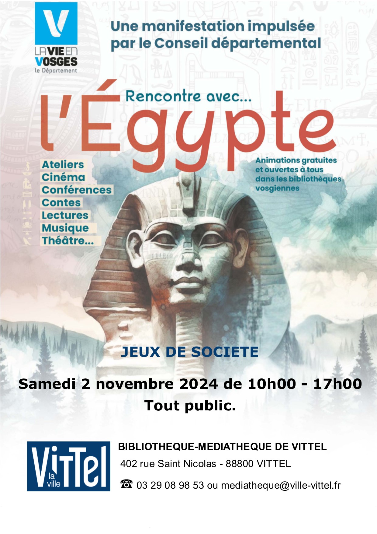 Animation jeux de société sur le thème de l’Égypte. Tout public. Gratuit.