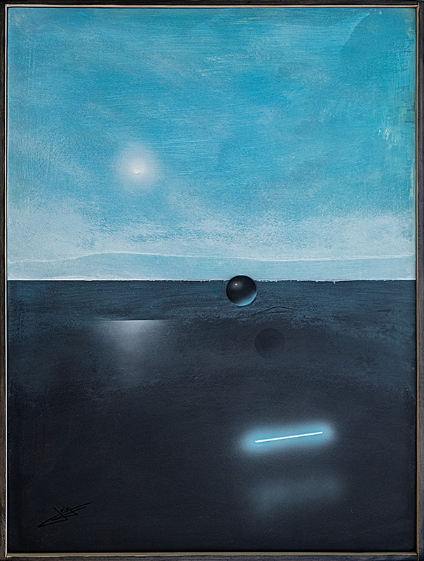 Sébastien aime peindre des œuvres symboliques dans une architecture minimaliste et fantasmée. Il est en quête d’harmonie entre le naturel et l’artificiel.
