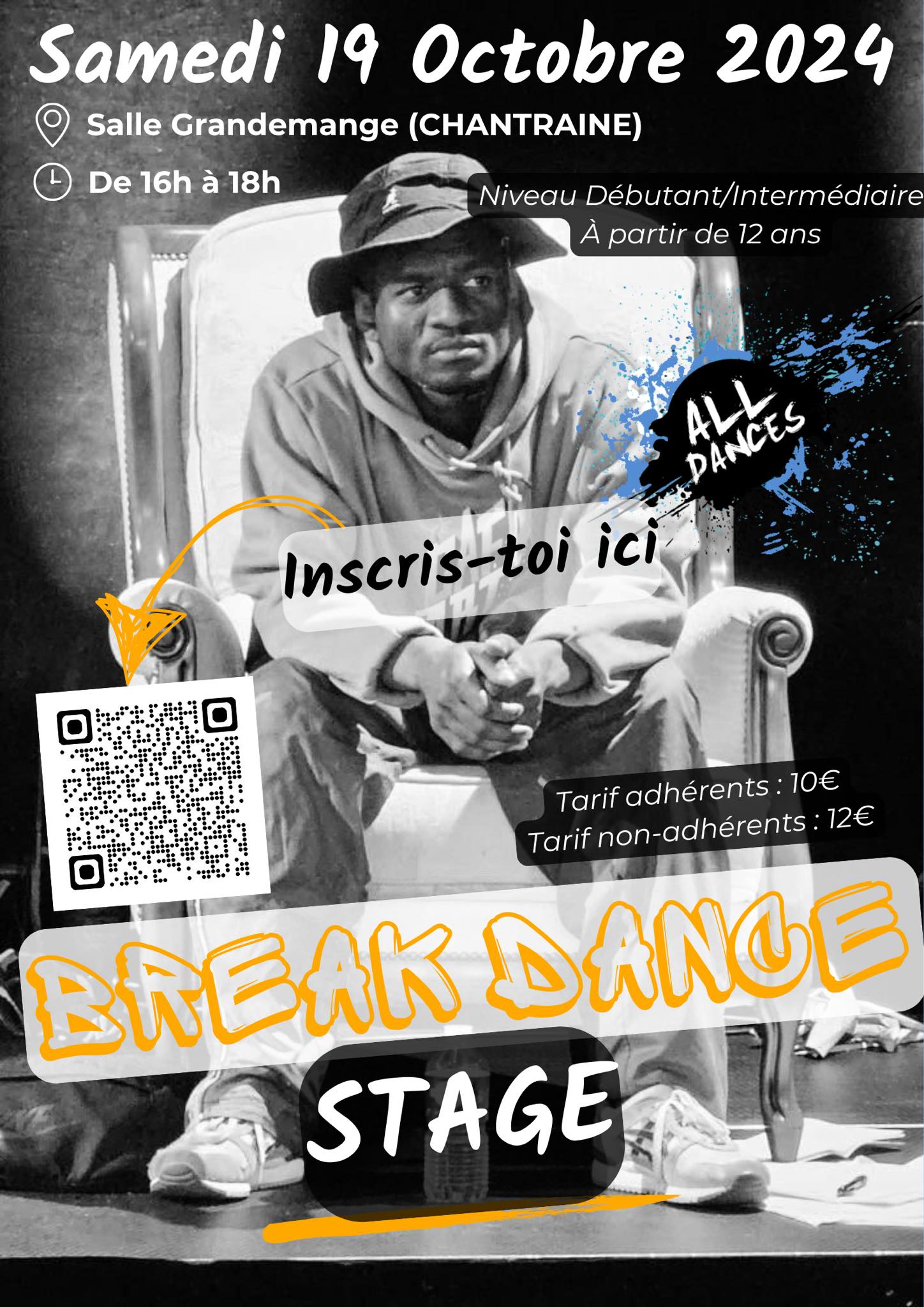 Vous souhaitez découvrir ou approfondir votre technique dans le style qu’est le break dance ? Alors participez à notre stage le Samedi 19 Octobre de 16h à 18h à la salle Grandemange de Chantraine‼️