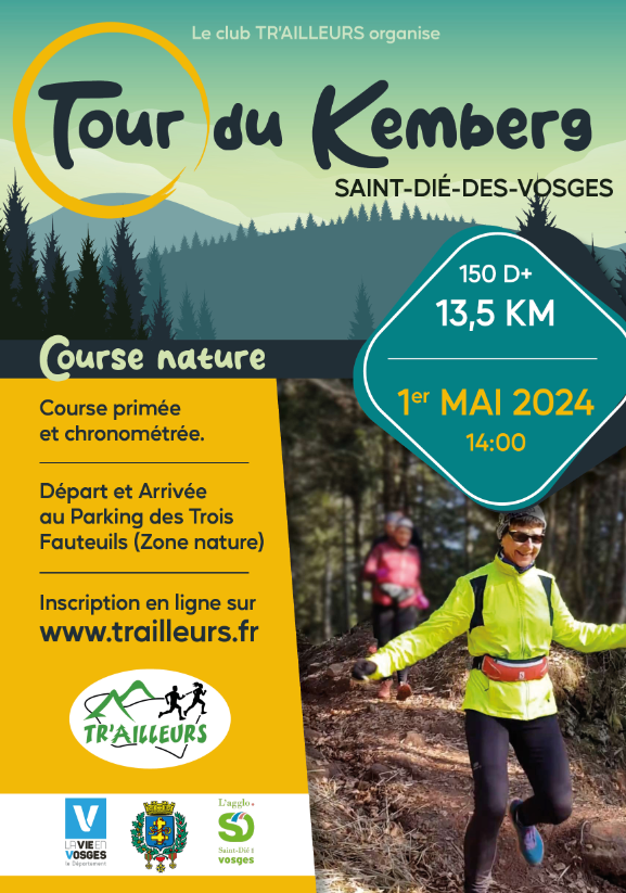 Le tour du Kemberg est une course nature primée et chronométrée avec un départ et une arrivée aux trois fauteuils à Saint-Dié-des-Vosges, Zone nature, voir le plan en bas de page.