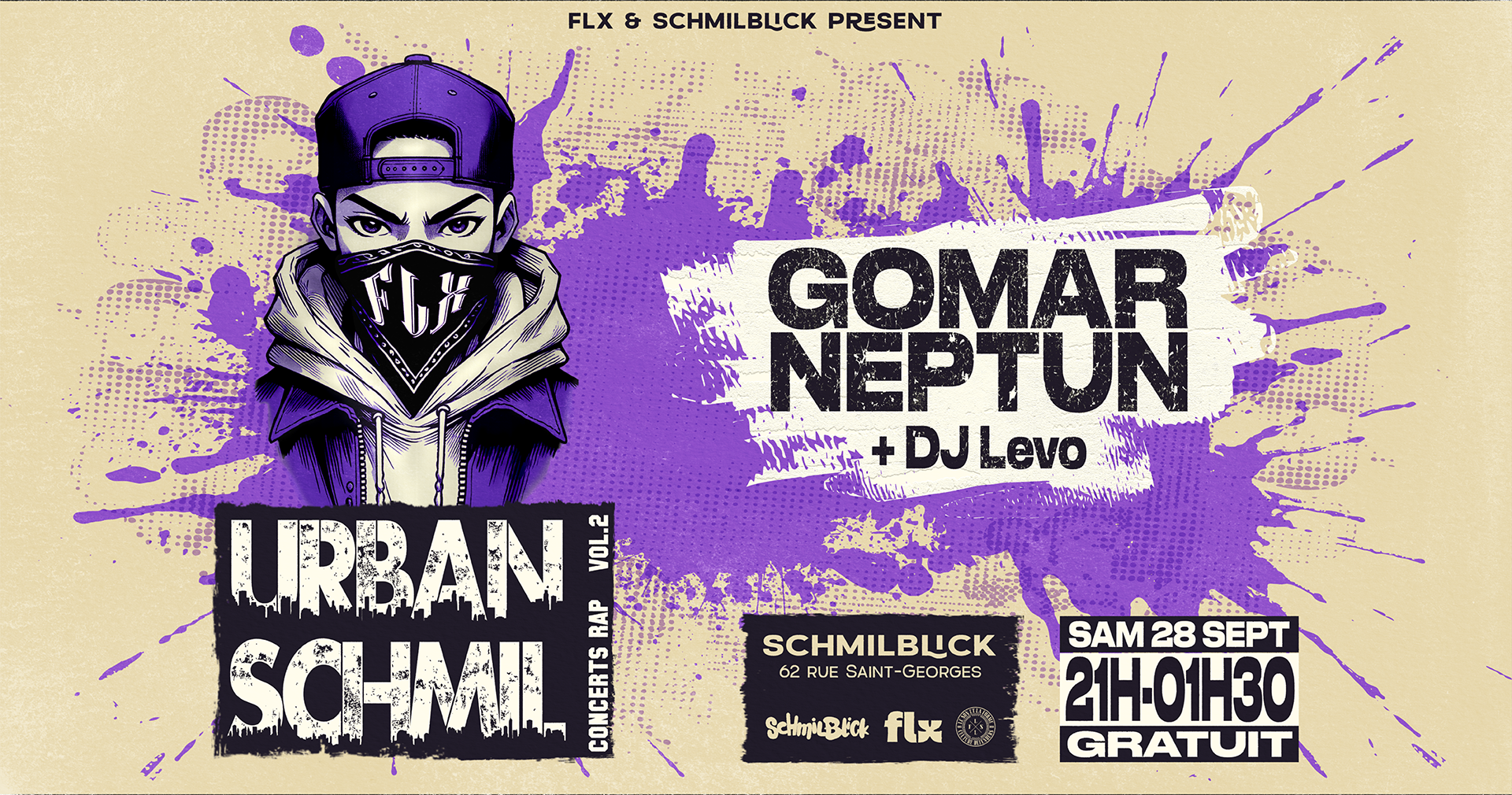 Comme le Schmilblick nous a soutenus pour notre toute première soirée, on remet le couvert avec un concert rap dont vous allez vous souvenir. RDV le 28 septembre au Schmilblick avec Gomar, Neptun et DJ Levo aux platines !